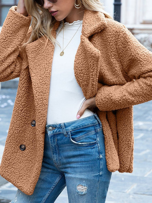 Women Casual Long Sleeve Shawl Collar Basic Fleece Teddy Bear Jacket Coat QL92