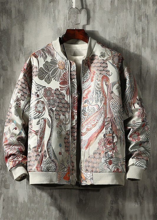 New Light Brown Stand Collar Button Print Men Coat Fall WJ025