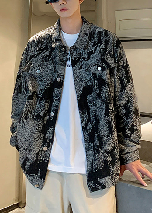 Art Print Button Pockets Denim Mens Coats Fall WA031