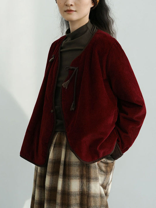 Women Vintage Autumn Solid Corduroy Padded Coat WU029
