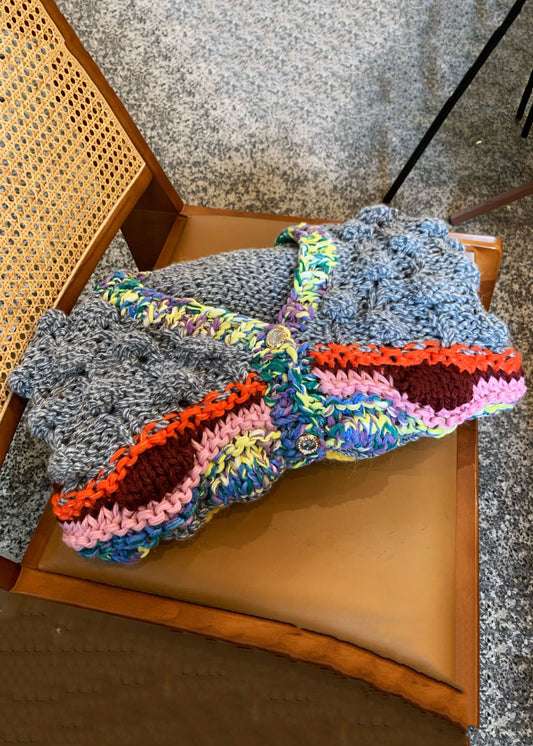 Women Grey V Neck Button Cotton Knit Coat Winter WY030