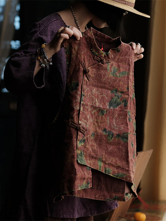 Women Ethnic Flower Irregular Hem Linen Vest AI1016