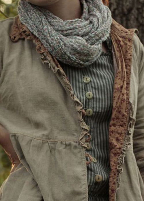New Green Ruffled Solid Cotton Coat Long Sleeve FF060