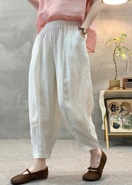 Pants Summer Waist White Linen Harem Casual Elastic