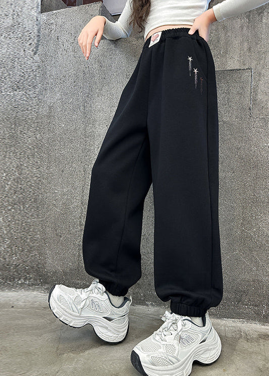 Loose Mulberry Pockets Patch Elastic Waist Warm Fleece Pants Spring TN007