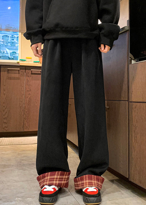 Casual White Plaid Patchwork Warm Fleece Men Pants Spring RM042