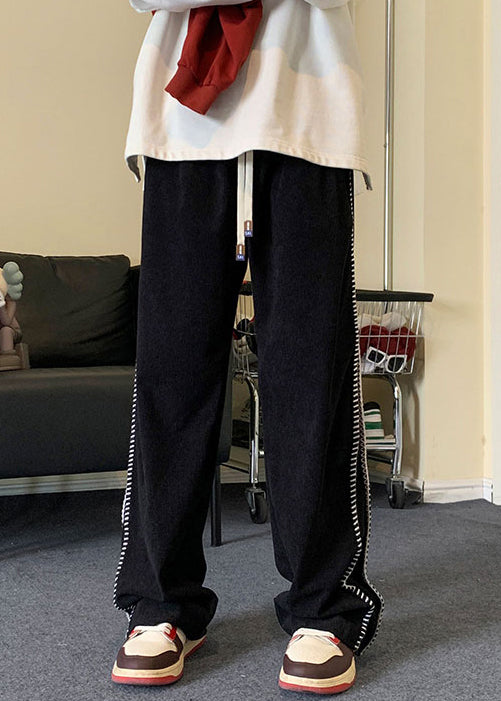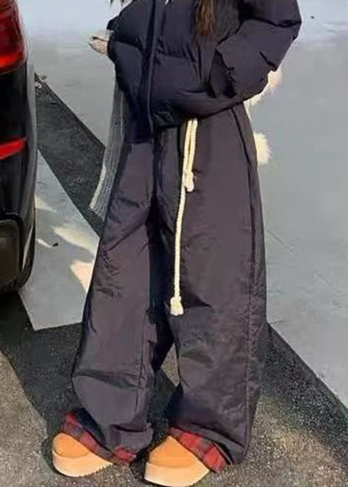 New Black Pockets Drawstring Cotton Filled Men Pants Winter RM032