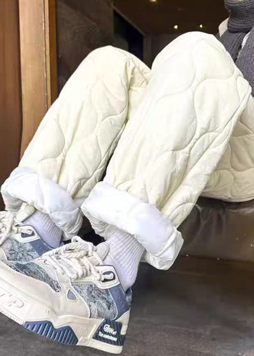 Simple White Drawstring Solid Elastic Waist Mens Pants Winter RM028
