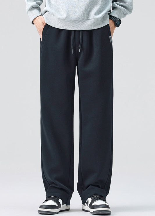 Simple Grey Lace Up Elastic Waist Warm Fleece Mens Pants Spring RM043