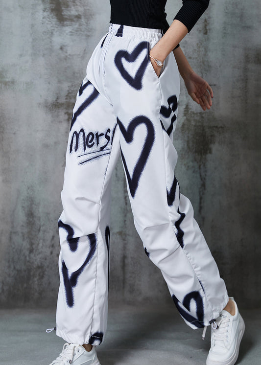 DIY White Love Painting Drawstring Cotton Pants Spring AL1015