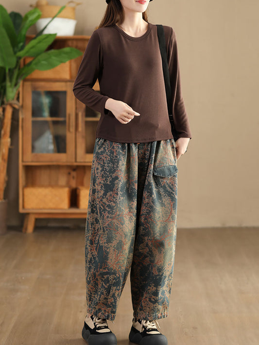 Women Autumn Vintage Flower Cotton Harem Pants AI1038