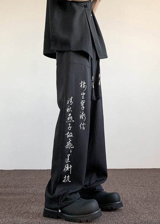 Chinese Style Black Print Ice Silk Loose Men's Lantern Pants Summer YT059