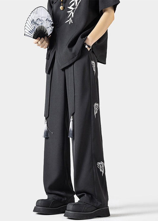 Chinese Style Apricot Embroidery Ice Silk Men Pants Summer YT057