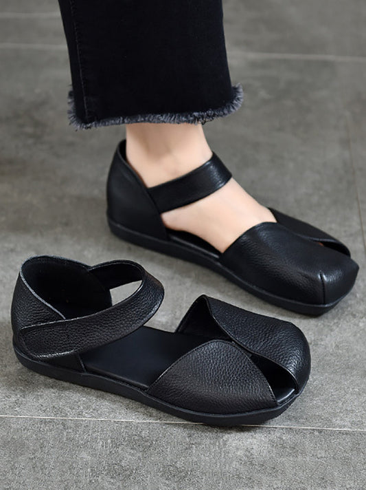 Women Summmer Vintage Soft Leather Cutout Flat Sandals FG1028
