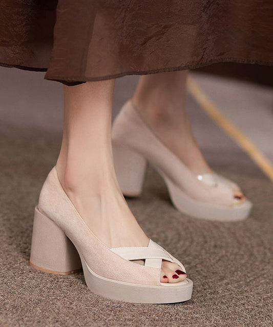 Apricot Solid Genuine Leather Cross Strap Platform Heels RT1087