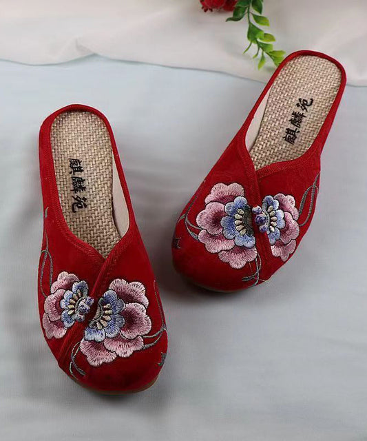 White Wedge Cotton Fabric Bohemian Embroidery Slide Sandals CZ1053