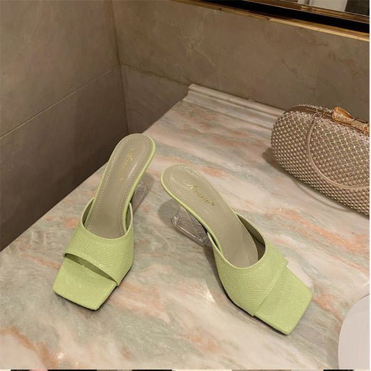 Rhinestone Stiletto-Heel Slide Sandals AE1058