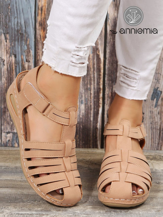 Ethnic Pattern Punched Hollow Velcro Vintage Sandals QAS2