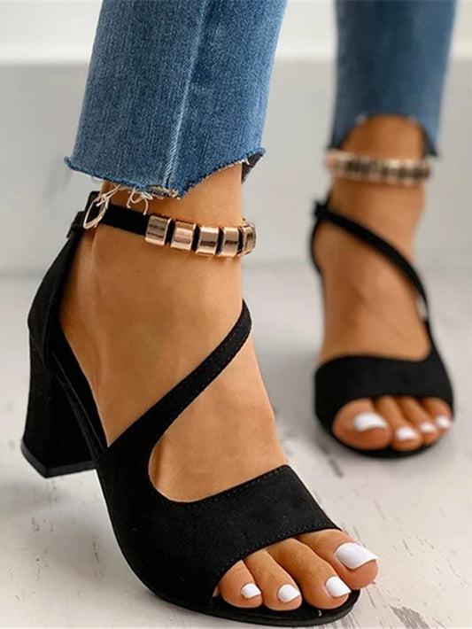 Beads Decor Chunky Heel Ankle Strap Sandals QAF8
