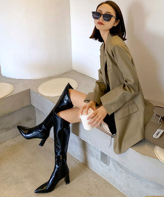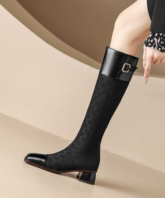Boutique Splicing Chunky Knee Boots Pointed Toe