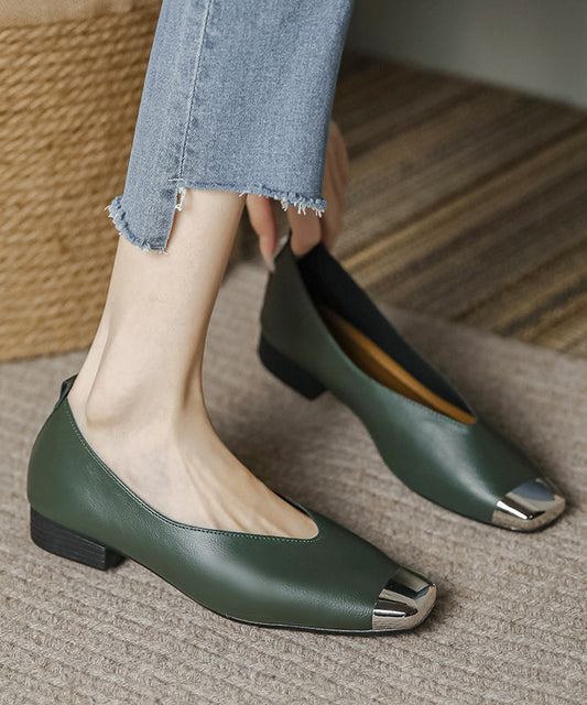 Retro Cross Strap Khaki Cowhide Leather Shoes