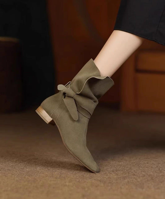 Khaki Boots Splicing Pointed Toe