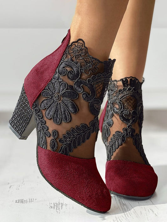 Lace Split Joint Chunky Heel Sandals Boots with Back Zip QAS31