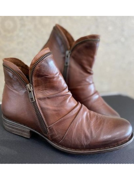 Comfortable Moccasin Upper Zip Block Heel Boots AH207