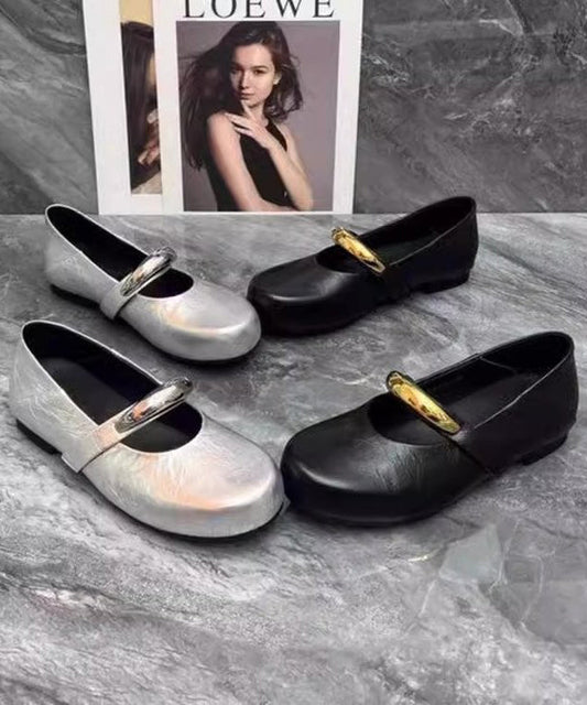 Beautiful Leather Black Shoes Comfy Faux Flat Splicing