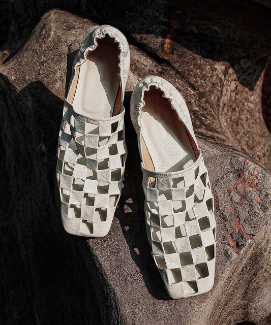 Toe White Boutique Splicing Pointed Sheepskin Flat Shoes