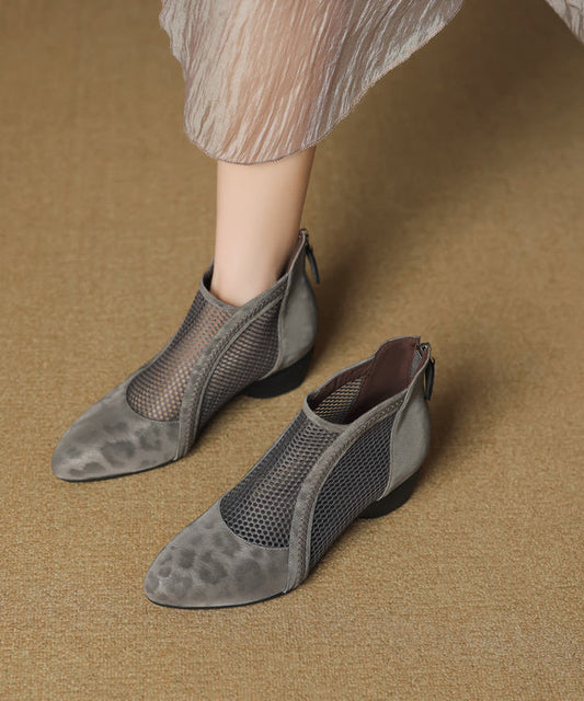 Black Chunky Splicing Boots Handmade Mesh Breathable