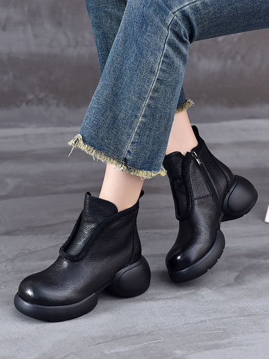 Women Autumn Genuine Leather Solid Platform Ankle Boots AV1007
