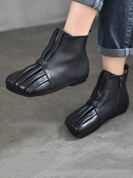 Women Soft Leather Shirred Square Toe Ankle Boots AV1069