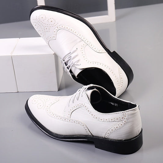 Men's White Leather Oxford Shoes – Black Faux Patent and