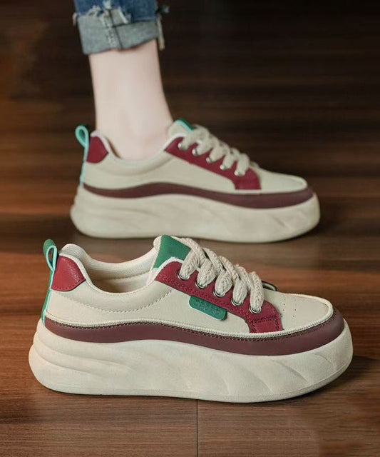 Brown Boots Chunky Cowhide Leather Fashion Splicing Cross Strap AP1025