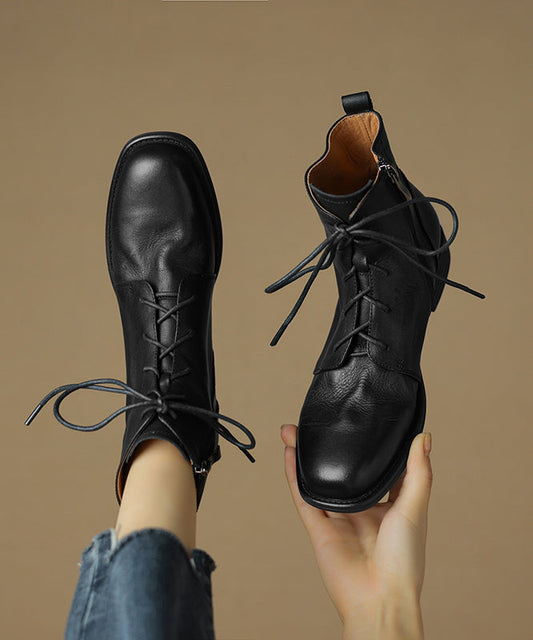 2024 New Chunky Boots Black Cowhide Leather AP1023