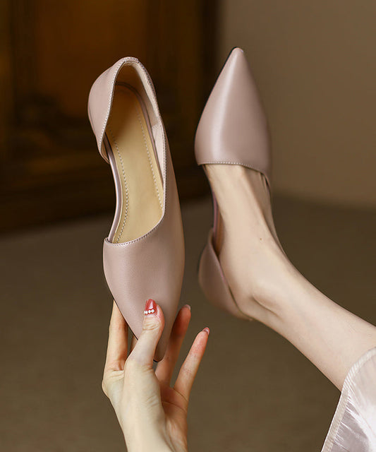 Style Apricot Sandals Chunky Sheepskin Hollow Out Pointed Toe AP1006