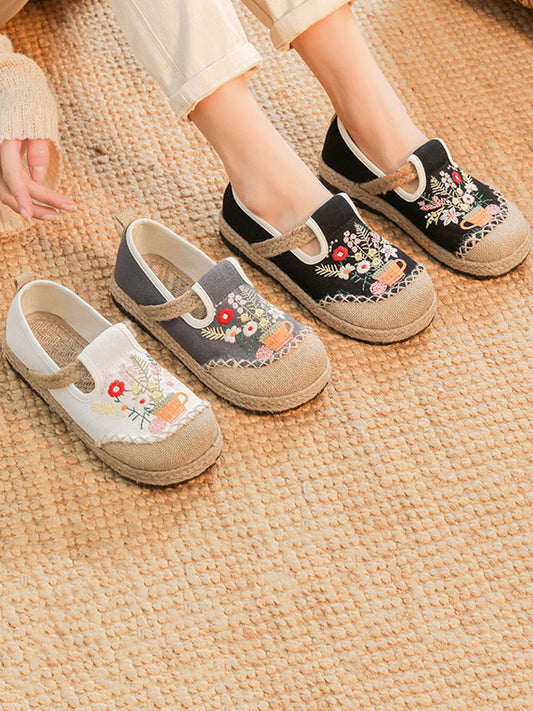 Women Summer Artsy Flower Embroidery Linen Cotton Shoes AT1080