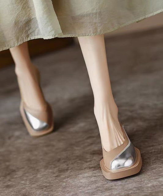 Elegant Rivet Splicing Chunky Sandals Beige Pointed Toe OI016