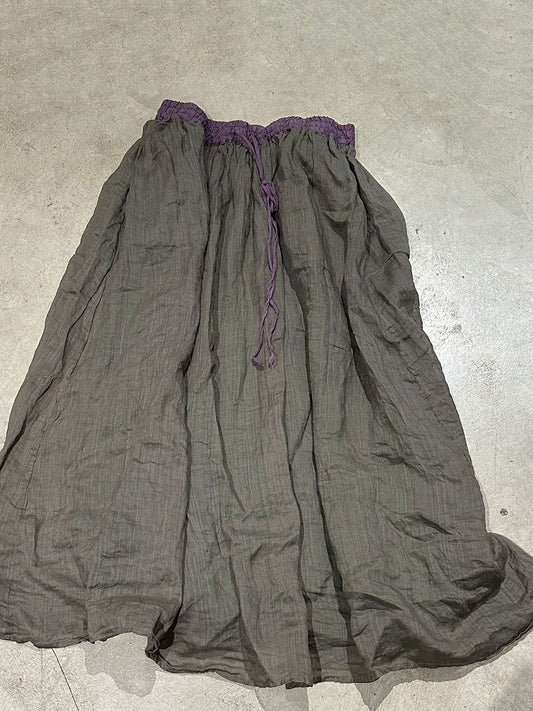 Summer Vinage Colorblock Ramie Loose Women Skirt