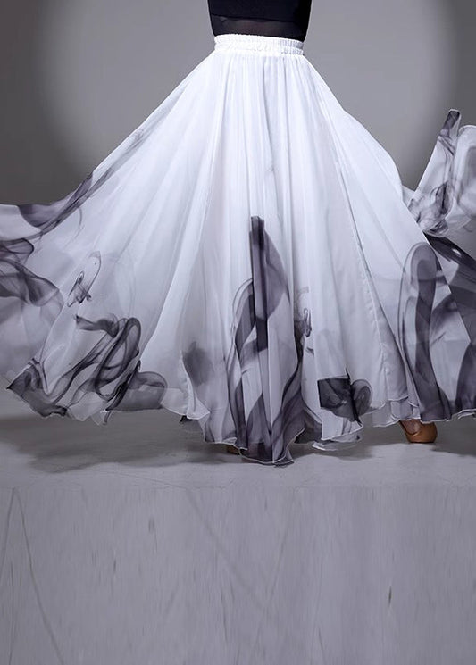 Chinese Summer Elastic White Silk Style Waist Skirt