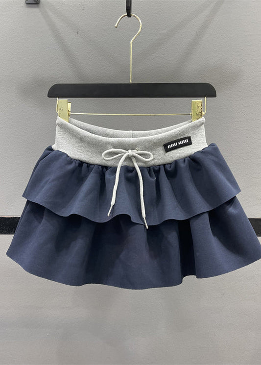 Elastic Natural Drawstring Line Waist Skirts A Grey