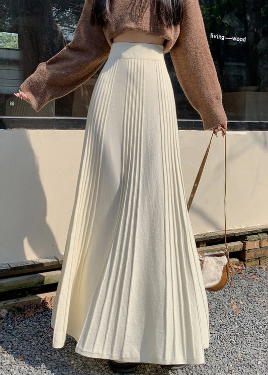 Art White High Waist Wrinkled Knit Holiday Skirts Spring YP041