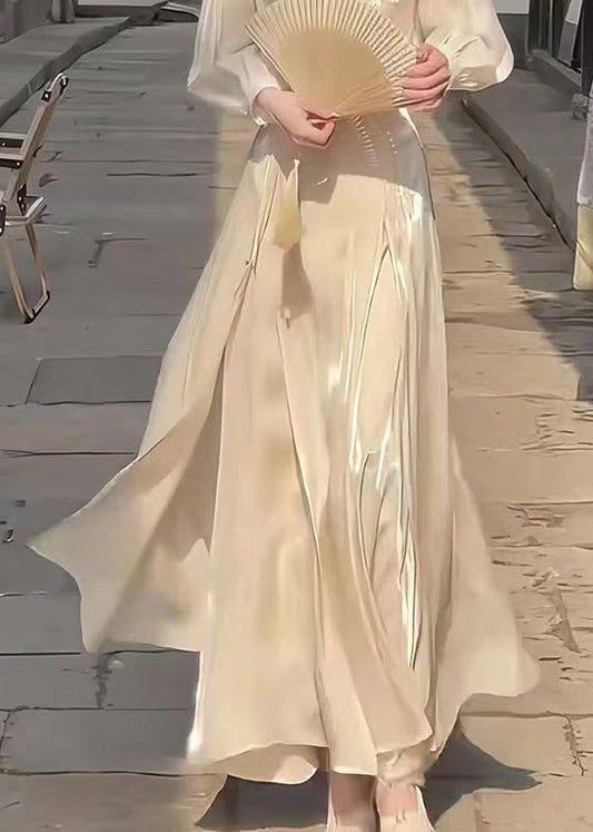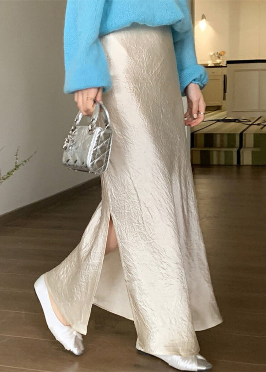 New Apricot Side Open High Waist Patchwork Silk Skirts Fall QP040