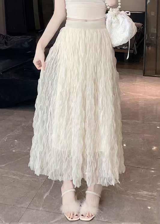 Floral Beige Solid High Waist Lace Skirts Summer QP055