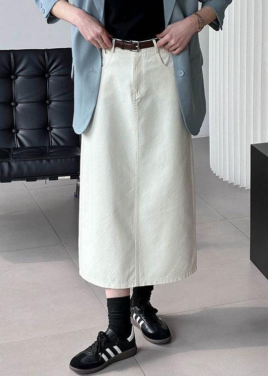 New White Pockets High Waist Cotton Skirt Fall AF1080