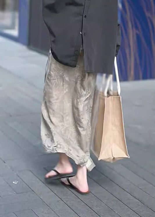 Jacquard Khaki High Waist A Line Skirts Summer UU034