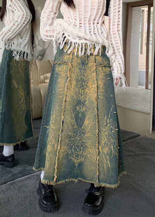 Modern Blue Print Pockets Denim A Line Skirts Fall AW1005