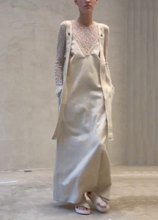 New Lace Top Beige Strap Skirt Two-Piece Set For Summer ZL003