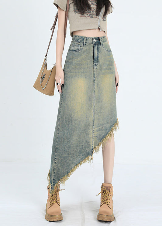 Fashion Blue Asymmetrical Tasseled Denim Skirt Summer EE1012